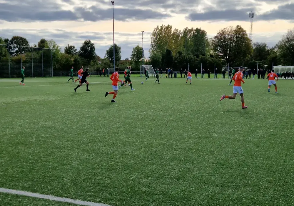 De eerste helft bracht weinig opwinding. Beide ploegen leden veel balverlies en kwamen tot weinig goede aanvallen. Op het halve uur kopte Jeffrey van den Dikkenberg de bal op de buitenkant van de paal. De rust leek met 0-0 aan te breken maar daar dacht Jesper van Dalen anders over. Jan van Diermen gaf met buitenkant voet een hoge voorzet. Argend Selimi legde de bal met een subtiele voetbeweging terug en de inlopende Jesper van Dalen schoot de bal vanaf de zestien meter halfhoog strak in de hoek (0-1).