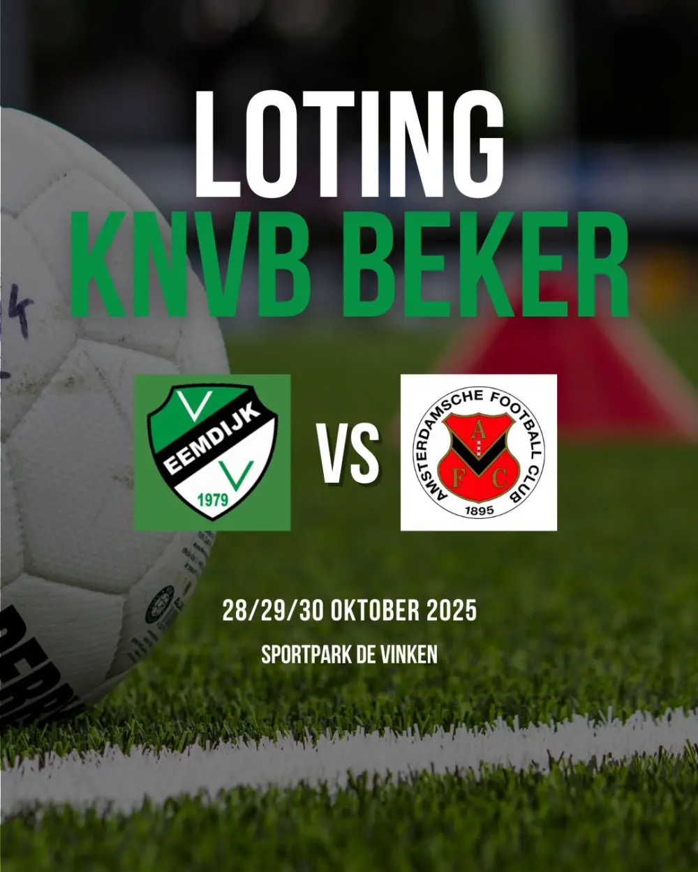 Eemdijk heeft voor de eerste ronde van de KNVB-Beker een thuiswedstrijd geloot tegen AFC uit Amsterdam. AFC speelt in de Tweede Divisie. De wedstrijd op sportpark De Vinken vindt plaats op dinsdag 28, woensdag 29 of donderdag 30 oktober.