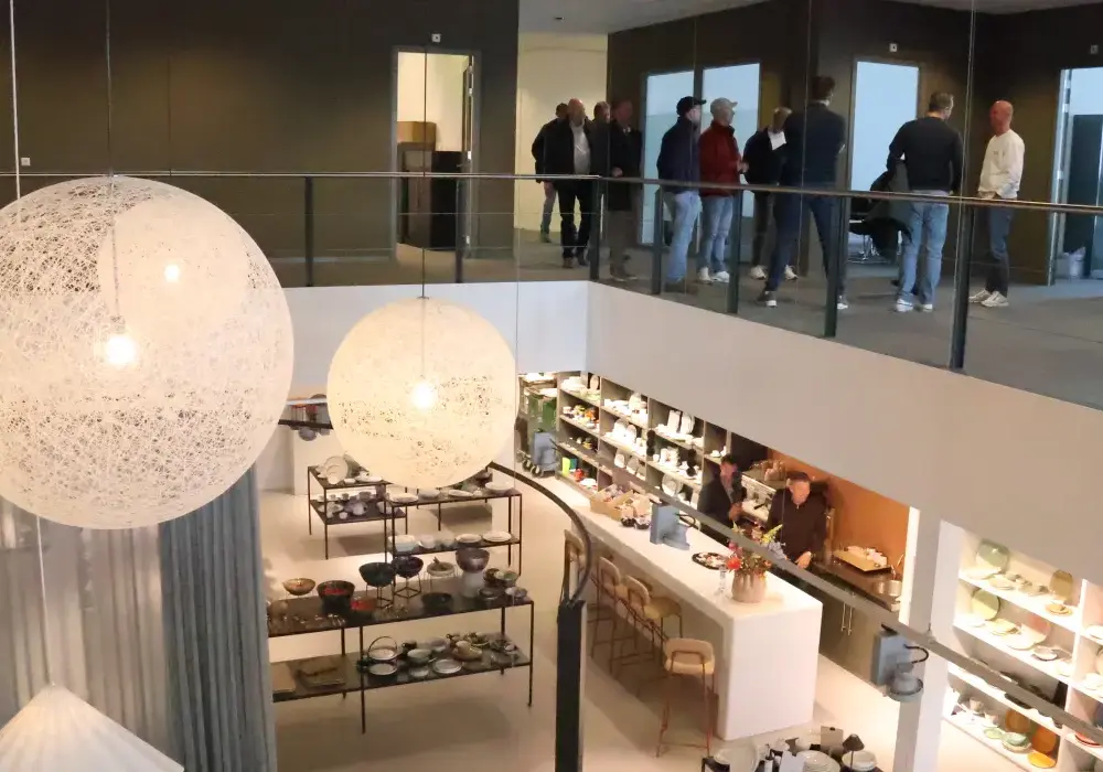 Rond 11.45 vertrokken wij richting Nieuwegein en kregen wij bij aankomst een warm welkom van Mark en zijn vrouw Emanuelle, bij binnenkomst mochten wij eerst de indrukwekkende showroom vol met de prachtigste serviezen, bestek, broodplanken, proffesioneel keukenapparatuur en nog veel meer bewonderen onder het genot van een hapje en een drankje.